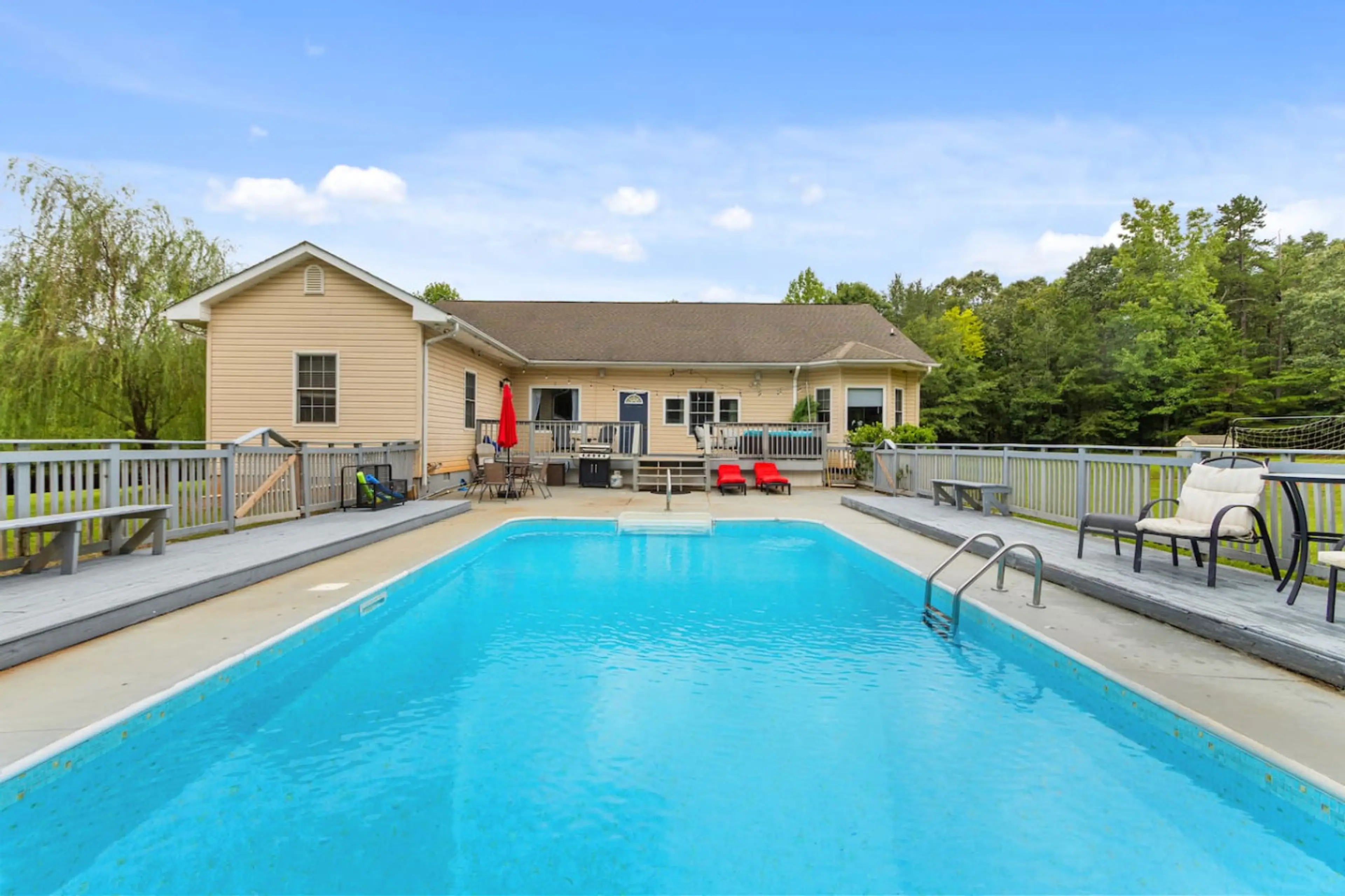 Welcome to your own private 1BR/1BA retreat. Spend your day by the pool, fire up the grill at night, and unwind under the glow of outdoor lights. *What you’ll love* -->Unlimited Pool access (not heated) with loungers, noodles & floats! -->Portable stovetop, cookware, fridge & dining space -->Smart ...